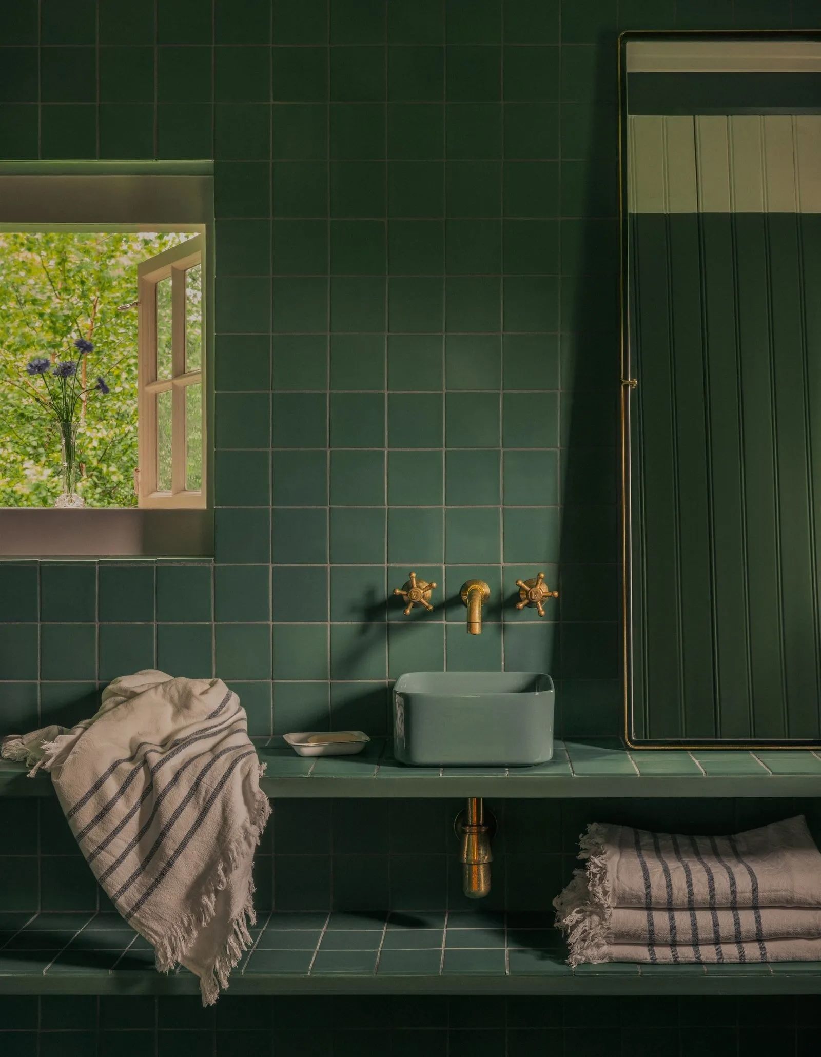 Every corner of the house, including the bathroom, is designed with a “very simple, very Scandinavian” aesthetic. The tiles are Made a Mano and the sink is by Ceramica Cielo. Both the faucet and the mirror are by Toni Copenhagen.