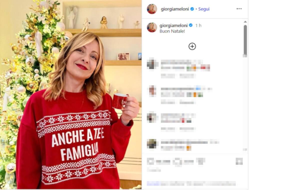 Let’s start with Prime Minister Giorgia Meloni, who on the morning of December 25th published a photo in which she appears smiling, in front of the decorated tree, wearing a red Christmas sweater with the writing “To you and your family too”, the classic response in an exchange of greetings, and in her hand a cup of coffee, also red. The caption accompanying the image is “Merry Christmas!”.